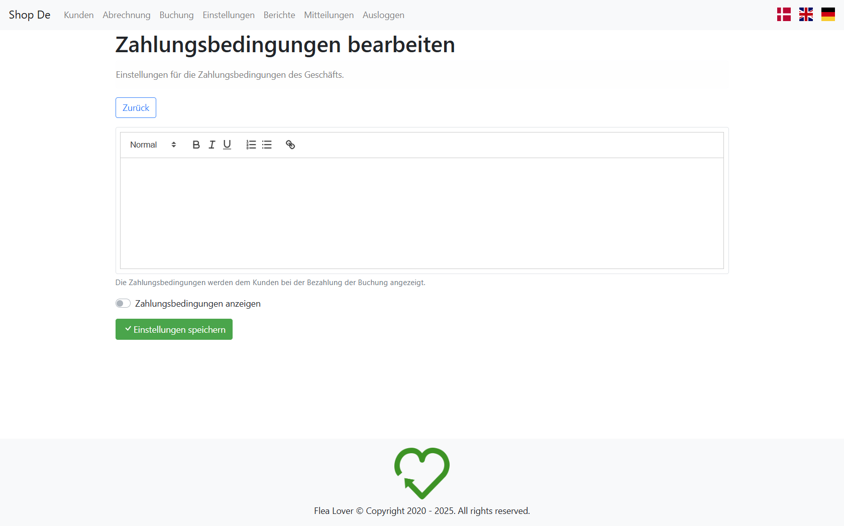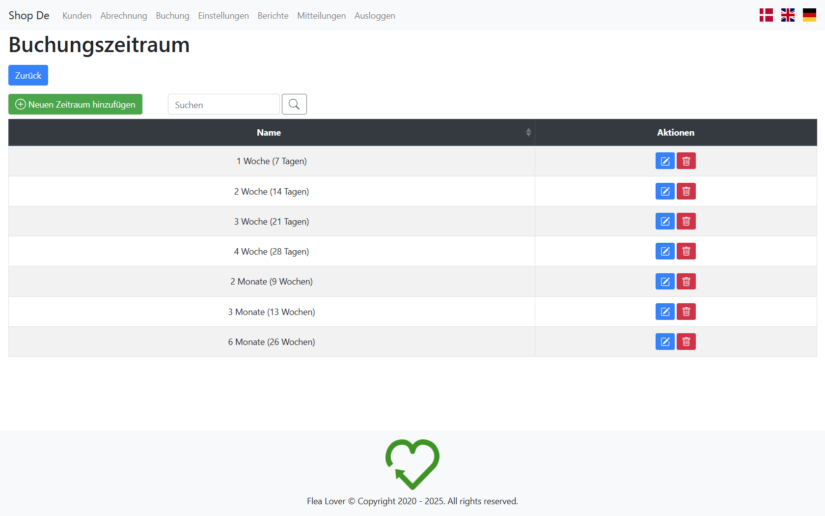 Die Buchungsfunktion im Flea Lover-System dient dazu, einen internen Überblick über die Buchungen Ihrer Kunden zu erhalten. Sie ist für den internen Gebrauch bestimmt und wird für Ihre Kunden nicht sichtbar sein.