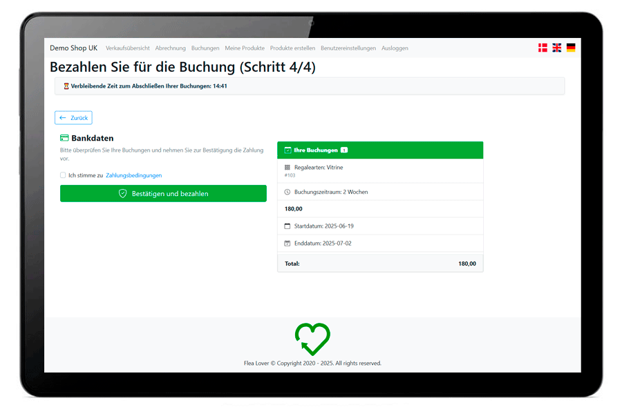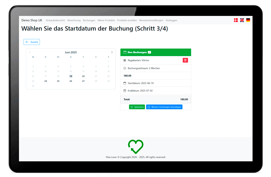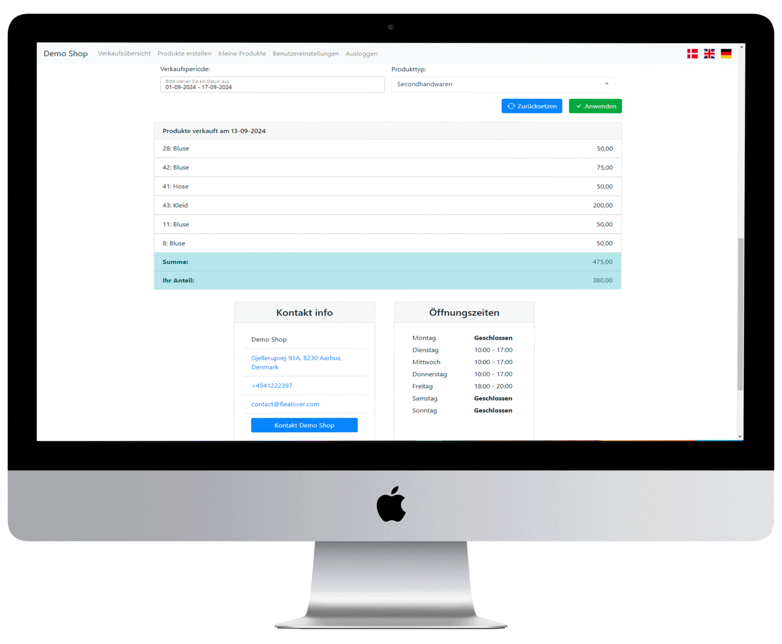 Wenn Sie einen Wiederverkaufs- oder Kommissionsshop führen, in dem Kunden ihre Artikel auf Kommission verkaufen können, ist Flea Lover die perfekte Lösung für Sie! Flea Lover bietet eine moderne, umfassende Lösung, die das Management Ihres Geschäfts einfacher denn je macht. Das System ist speziell auf die einzigartigen Bedürfnisse von Kommissionsshops zugeschnitten und bietet Werkzeuge zur Verwaltung von Buchungen, Zahlungen, Kunden und Barcode-Druck.